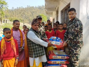 अमर सुनार दैलेख । नेपाली सेनाको इन्द्रदल गुल्मले आफ्नो वार्षिकोत्सवको अवसरमा पवित्र तीर्थस्थल नाभिस्थानका बटुकहरुका लागि खाद्यन्न सहयोग गरेको छ । दुल्लू नगरपालिका–१० गमौडीको नाभिस्थानमा सञ्चालित पञ्चकोशी वेद विद्याश्रममा अध्ययनरत बटुकहरुका लागि गुल्मले उक्त सहयोग गरेको हो ।
