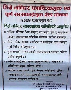 ‘डिग्रे मन्दिरमा प्लाष्टिक प्रतिवन्ध’