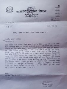 आन्तरिक राजश्व कार्यालयले जिल्ला प्रशासन कार्यालय रुकुममा पठाएको पत्र
